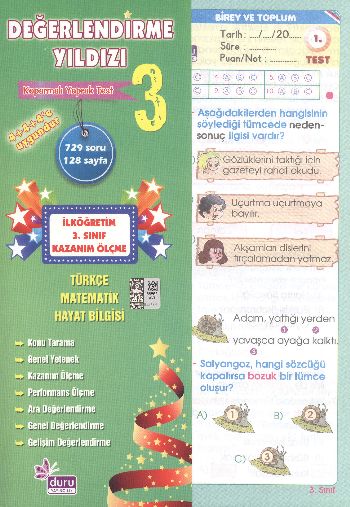 3. Sınıf Değerlendirme Yıldız Yaprak Test